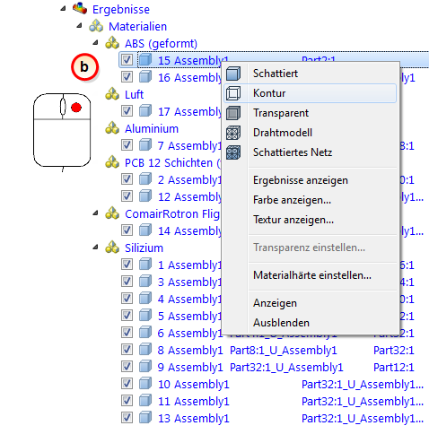 6. Schattieren Sie zur Verbesserung der Ansicht die internen Komponenten: