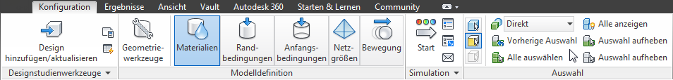 9. Klicken Sie zum erneuten Auswählen der Zuleitungsfläche auf Konfiguration (Registerkarte) > Auswahl (Gruppe) > Vorherige Auswahl.