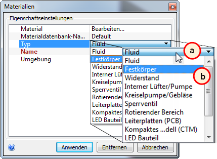 4. Wählen Sie im Schnellbearbeitungs-Dialogfeld Materialien den Materialtyp: