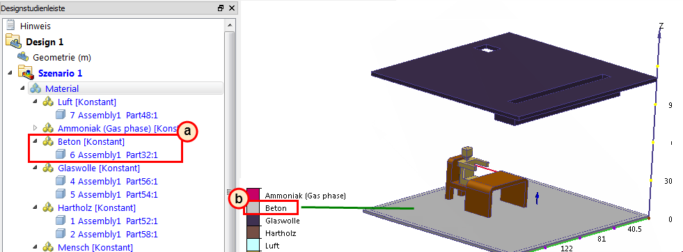 5. In der Designstudienleiste können Sie anhand der Teilfarbe überprüfen, ob das Material Beton korrekt zugewiesen wurde: