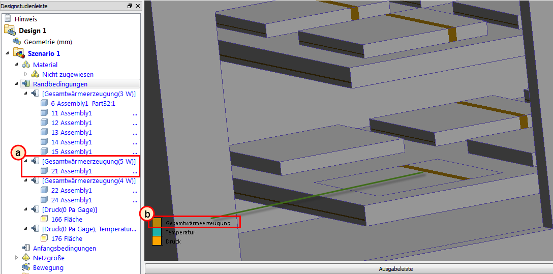 6. Um zu überprüfen, ob die Randbedingung korrekt auf den Chip angewendet wurde, überprüfen Sie die Designstudienleiste und den Farbstreifen auf dem großen Chip.