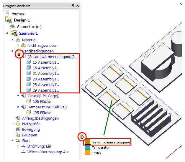 In diesem Schritt wenden wir eine Wärmedissipation (in Form einer volumetrischen Wärmeerzeugung) auf die sechs kleinen Chips auf der Leiterplatte an.