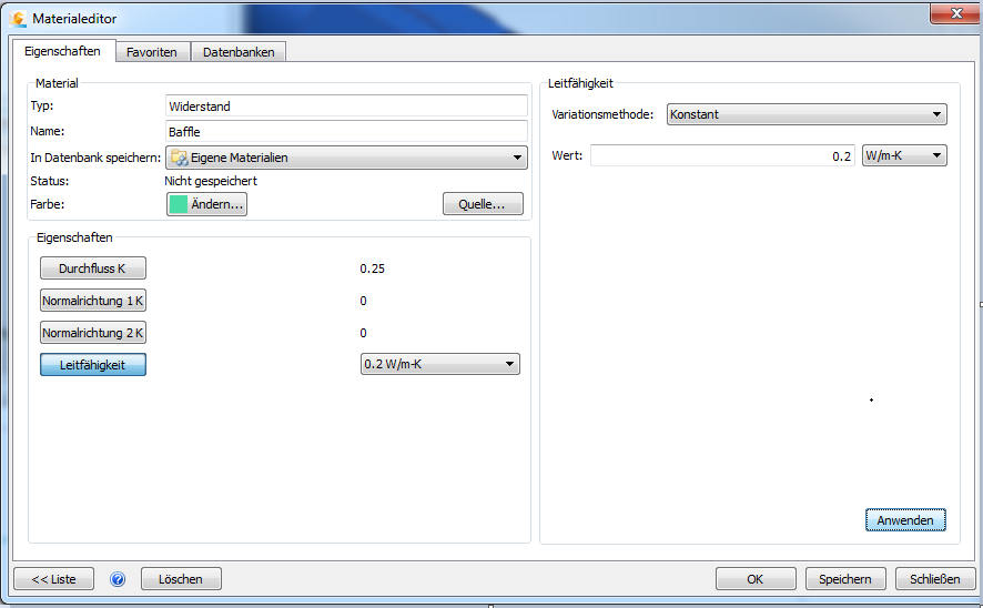 Wählen Sie Eigene Materialien aus dem Menü In Datenbank speichern.