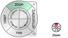 Anmerkung: Wenn das Rad angezeigt wird, können Sie mit Hilfe der Maustasten das Modell schwenken, zoomen und umkreisen. Über die Einstellung