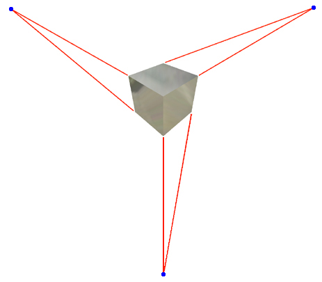 Im Modus Perspektivenkamera werden Bauteil- bzw. Baugruppenmodelle in einer Drei-Punkt-Perspektive angezeigt, einem visuellen Effekt, bei dem parallele Linien in einem Fluchtpunkt zusammenlaufen. Auf diese Weise nimmt das menschliche Auge bzw. eine Kamera Objekte wahr.