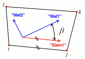Die Elementachsen a-b-c werden außerhalb der Koordinaten der Elementnormalen und der Seite ij des Elements angeordnet. Die Materialachsen x-y-z werden um den Winkel b zu den Elementachsen gedreht. Die Element- und Materialachsen sind für alle Layer im Stapel gleich. Die Layer- oder Faserachsen 1-2-3 werden um den Winkel β um die Materialachsen gedreht. Der Winkel kann für jede Schicht im Stapel unterschiedlich sein.