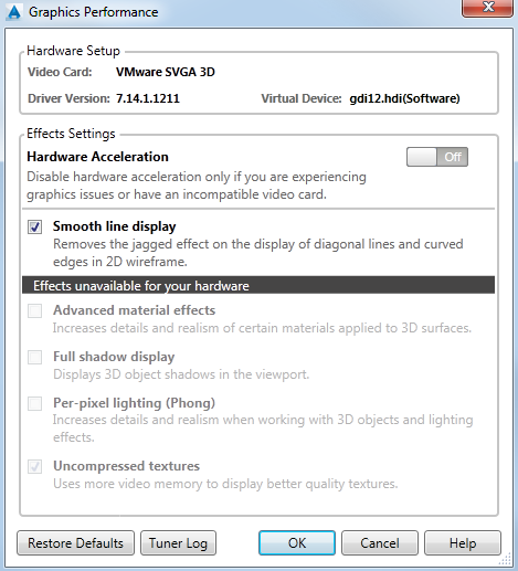 Settings for graphics performance are accessible when you enter the AutoCAD command GRAPHICSCONFIG. Doing this displays the Graphics Performance dialog box, as shown in figure 15.