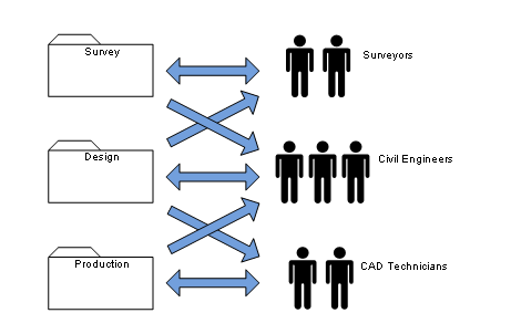 For any project team, and especially for a large one, you can protect your data by creating an organized system of access permissions to project folders. Typically you assign read-write access at the project level, and then apply restrictions to sub-folders within a project. It is usually most efficient to apply permissions to user groups rather than individuals. For example, your project team could include Surveyors, Civil Engineers, and CAD Technicians.