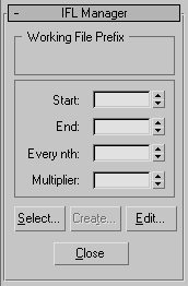 - Displays a file dialog that lets you select a file in a sequential list. The number appended to the file doesn't matter, as long as the prefix and file name extension are the same. After selecting the file, the spinners in the IFL Manager are enabled.