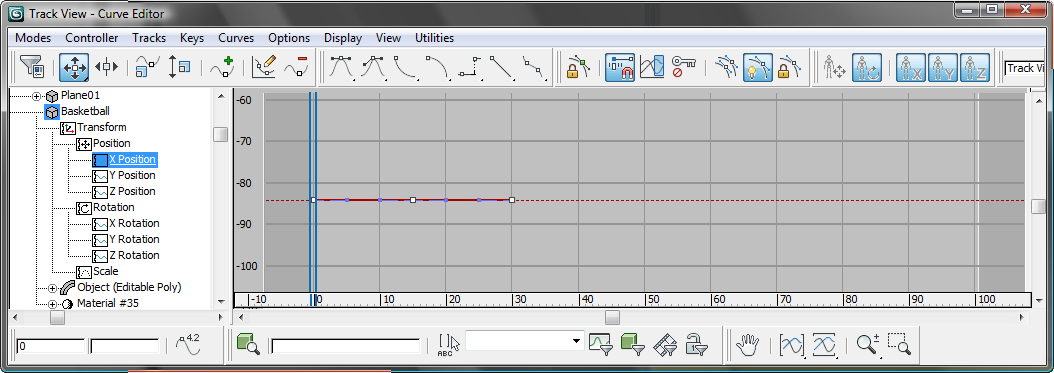 At first glance, Loop seems the obvious choice, but while this option successfully loops the bounce, it also loops the forward motion of the basketball, which is not what we want. You can see this effect in both the Curve Editor and the viewports.