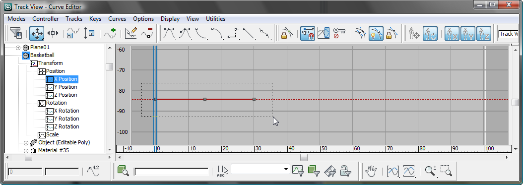 Typically, a bouncing ball does not bounce once. The Curve Editor gives you the means of repeating the initial bounce.