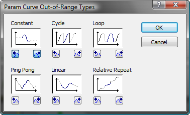 3ds Max opens the Param Curve Out-Of-Range Types dialog.