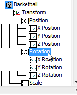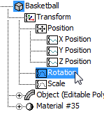 Now the basketball has a single Rotation track, with no subordinate X, Y, and Z Rotation tracks.