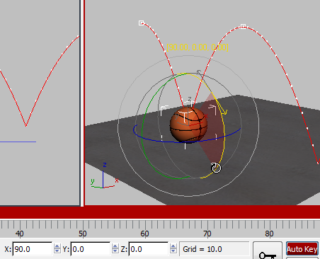 In this example, 3ds Max has generated extraneous and unrealistic sideways rotation for the ball.