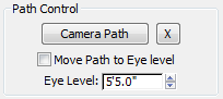 Note: By default, the camera will travel at a constant speed and will always point in the direction of travel. This is shown in the Advanced Controls rollout at the bottom of the dialog where both these options are enabled.
