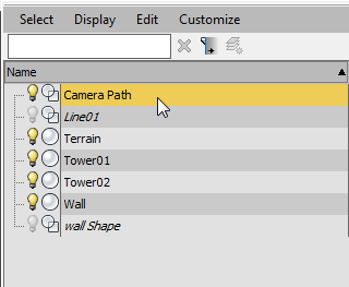 - On the Scene Explorer panel, click to select the Camera Path. The camera path object is a spline that the camera will follow.