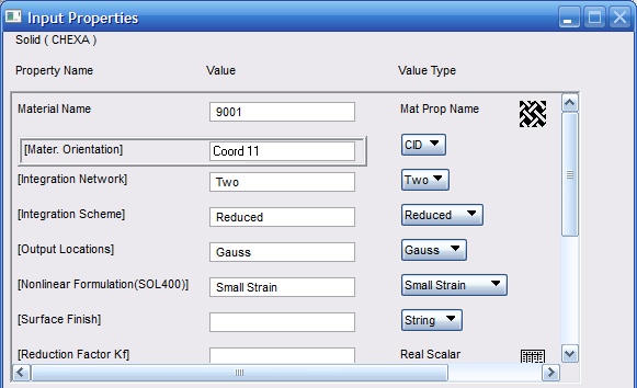 - From the Element Properties form on the Properties tab, select Create, 2D, 2D Solid.