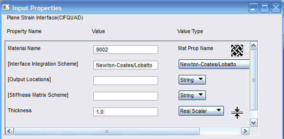 - Specify the Plane Strain and Interface options and click the Input Properties button.