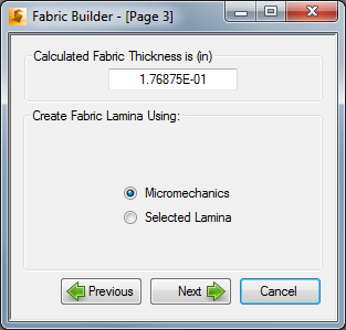 From Page 1 of the Fabric Builder dialog, choose Random Continuous Mat and select Next, Page 2 will become visible as shown in below.