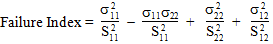 The Tsai-Hill criterion is a quadratic, interactive stress-based criterion that identifies failure, but does not distinguish between different modes of failure. Failure occurs whenever the following condition is satisfied: