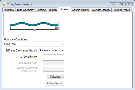 Once the Laminate and Tube Geometry have been defined, complete the following steps in the Vibration tab: