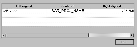 To change a header layout, click in the table field that displays the header you want to change. From the list of available formats, select the format you want to use. When the cursor is in a header layout field and you click Font, a dialog opens where you can specify the font for the selected field.