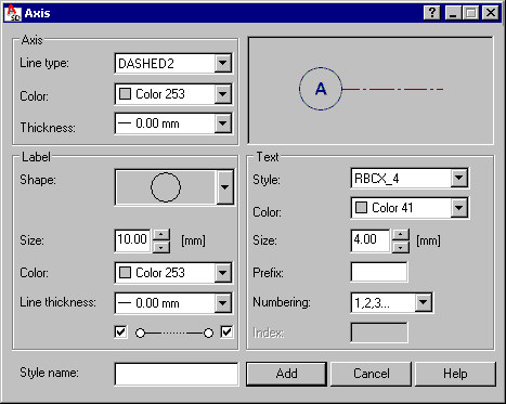 - Under Axis, define line type, color, and thickness parameters for the axis line