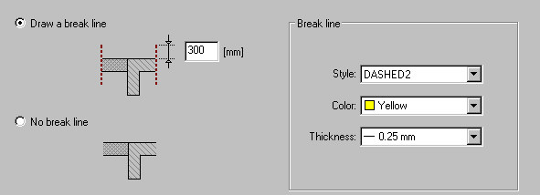Draw a break line - break lines will be displayed, and you can specify style, color, and thickness for the break line. You can also define the length of the line outside the structure model element