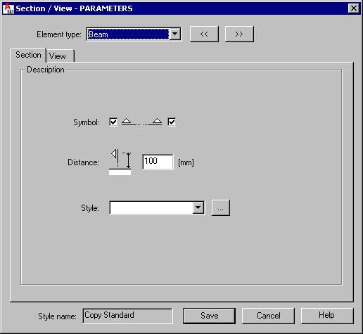 For Element type, select a structure element type (such as beam, column, or spread footing) for which parameters of sections and views will be defined.