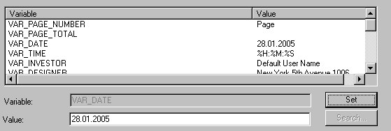 VAR_PAGE_TOTAL - value of this variable indicates the total number of printout pages. The text assigned to it may be preceded with a number of the current page if the VAR_PAGE_NUMBER variable is used.