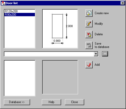 To add an opening from a database to the list of openings available in Autodesk AutoCAD Structural Detailing - Formwork Drawings, click (Add). The opening will be added to the list at the top left of the dialog.