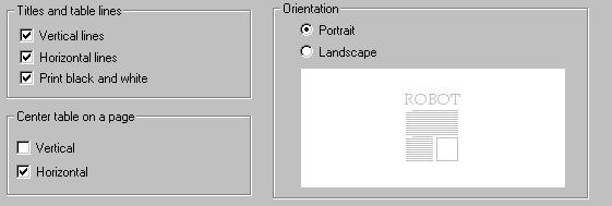 - If you clear Print black and white, the table is printed using the defined colors.