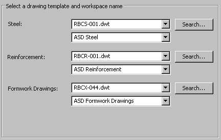 Select the Formwork Drawings tab to choose a drawing template that will be opened when launching Autodesk AutoCAD Structural Detailing - Reinforcement modules (when exporting formwork drawings to Autodesk AutoCAD Structural Detailing - Reinforcement).