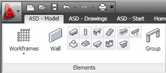 The ribbon displays automatically when a drawing is created or opened using the ASD Formwork Drawings workspace. You can display the ribbon manually using either of the following methods: