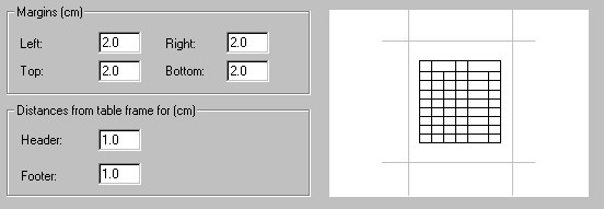 You can specify page margins: left, right, top, and bottom. Also, you can define distances between the table frame and the header or the footer.