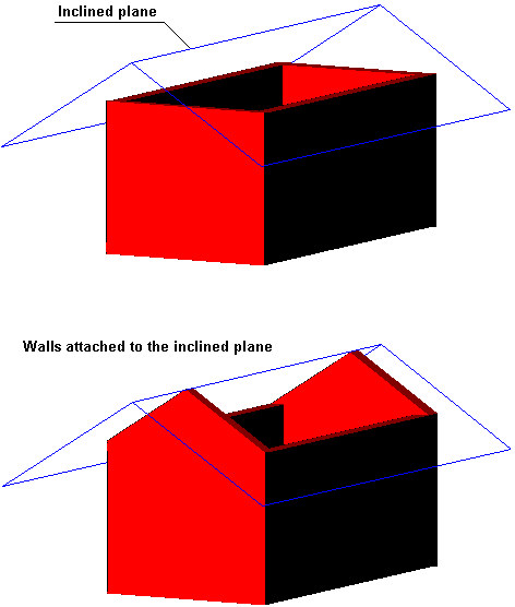 An example of attaching walls to the inclined plane is shown in the drawing below.
