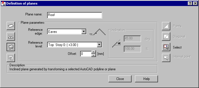Using this option, you can define intermediate (horizontal) planes or inclined planes on which elements of a structure model can be defined.