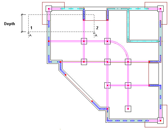 Note: To define a depth for each segment of a broken line that determines a cut of a structure model, change the position of the depth line.