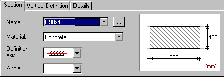 On the Section tab of the Beam: definition dialog, you can define parameters of a beam cross-section.