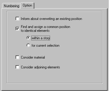 If you select this option, geometrically identical elements will be assigned the same position, either within a story or for the current selection.