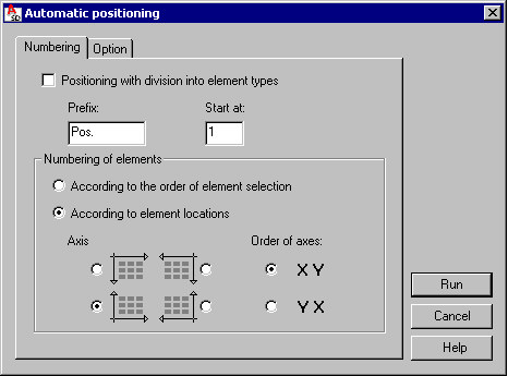 If you select According to the order of element selection, you need to select structure elements in the drawing area after you click Run. The order in which elements are indicated will be the criterion of assigning numbers to positions.