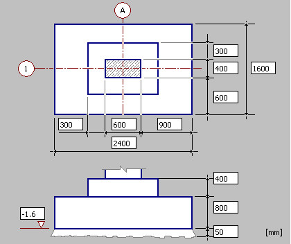 Modification of reinforcement will be illustrated based on changes in parameters of reinforcement generated for a spread footing with the use of the Spread Footing macro. To define the spread footing reinforcement, follow the steps below: