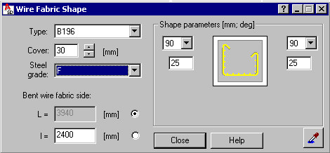 After selecting the option and a wire fabric in the cross section, the following dialog displays: