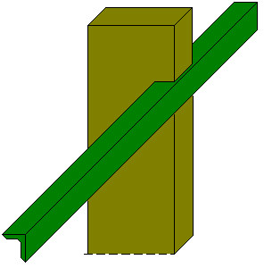 For rails made of angles, the alignment (facing operation) is performed differently (see the drawing below) – the horizontal leg of the rail angle is cut to fit the post shape and the whole angle is welded to the post.
