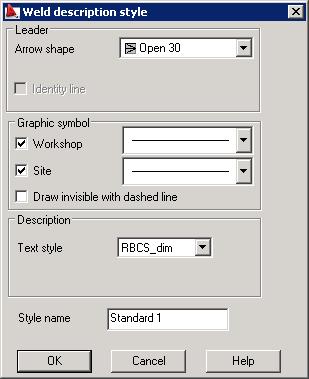 Use the Weld description style dialog to define a new style or modify an existing style of weld symbol description.