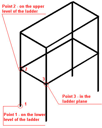 - In the drawing area, click to specify 3 points defining the ladder location (P1, P2, and P3 as shown above).