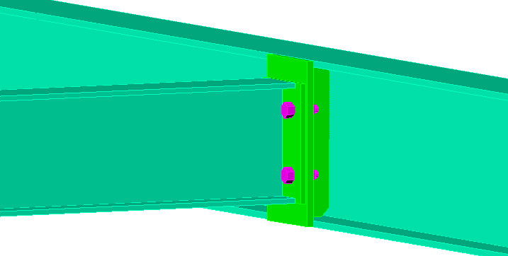 Using the endplate - beam/beam with ribs steel connection type, you can connect a secondary beam to generated ribs of the main beam.