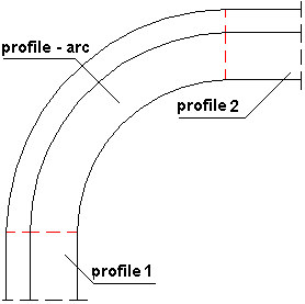 To insert an arc between 2 profiles, see the drawing below: