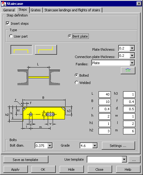 Use the options provided on the Steps tab to define parameters of stair steps.