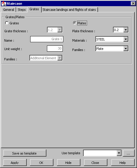 Define parameters of either plates or grates, which are horizontal elements of a staircase (landings).